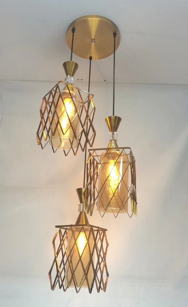 Antique Retro Brass Finished Adjustable 3-Lights Hanging Lighting Pendant Lamp Pendants Ceiling Lamp (Gold)