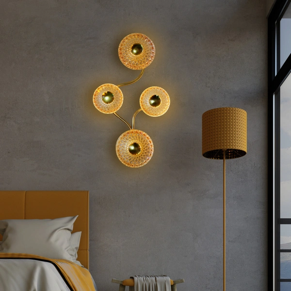 delamps 6702/4 W/L Modern Glass LED Wall Art Lamp (Warm White, Golden)