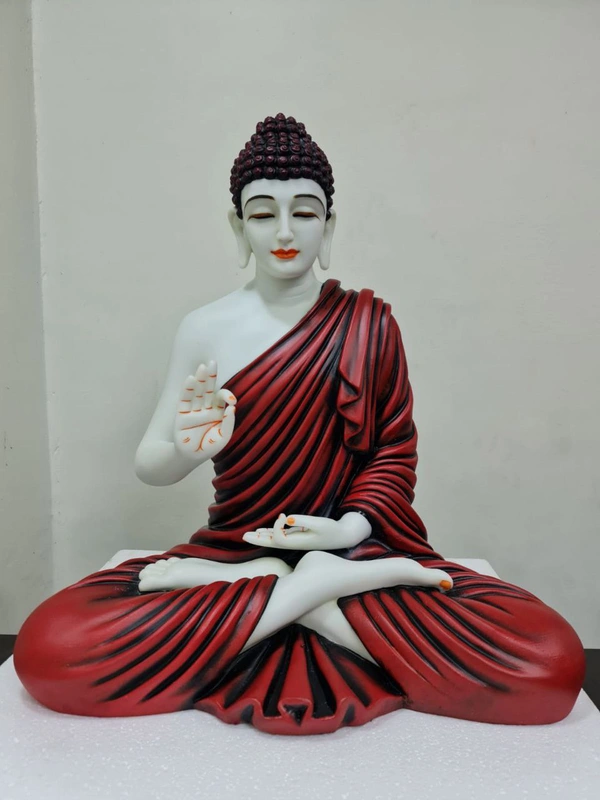 Delamps ARTISTICS White Red Lord Buddha Idol Statue Showpiece for Home Decoration,Office Decor,Garden Decor and Living Room