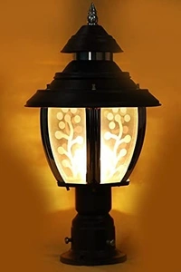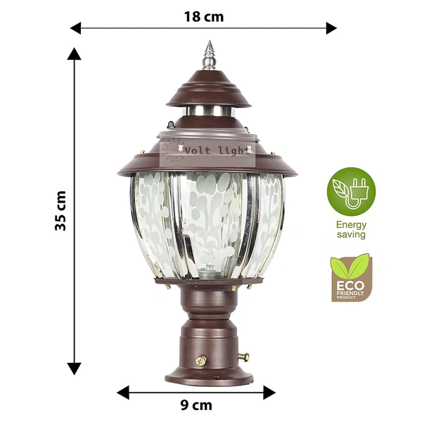 DELAMPS Decorative Metal Curve Glass Gate Pole Light Fog Bright Lighting Pole Mount Lamp Exterior Fixtures for Your Entrance Gate Light, Water Resistant Light Pack of 1