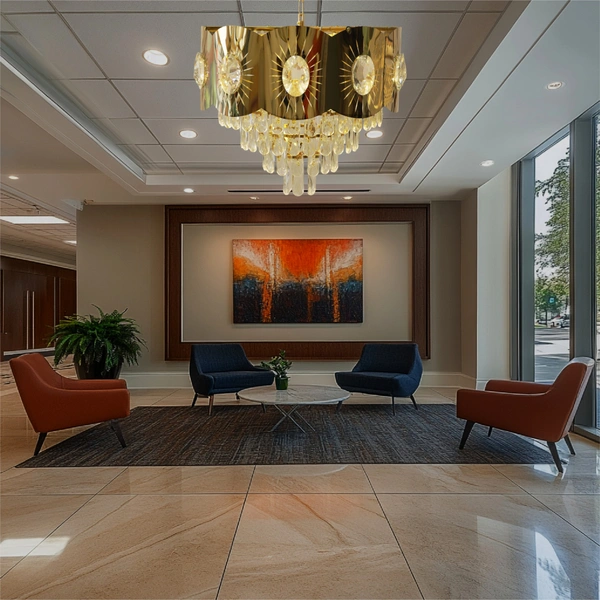 Delamps 500 mm golden remote controller chandelier for drawing room , hall, hotel , restaurant | color changing three color (6572R/500 RD)