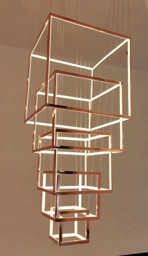 Delamps Hdc 5 Lights 5 Cube French Gold Body Led Double Height Stair Chandelier – Warm White