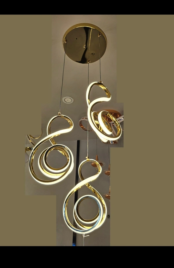 delamps LED Golden 3 Light music curl shape Rings Pendant Chandelier Light