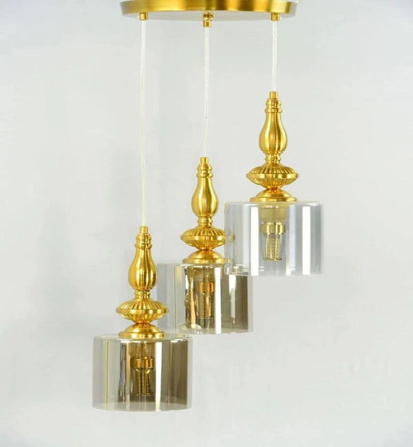 DELAMPS Smoke Luster Kamrak Glass With Golden Antique Fitting Pendants Ceiling Lamp