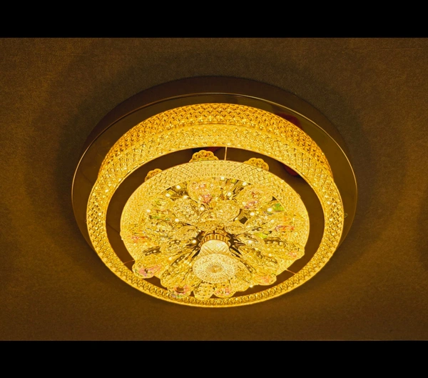 delamps Solid Crystal Mount LED Ceiling Layers Jhoomar/Chandelier for Home Decor(White and Silver, 24 inch)