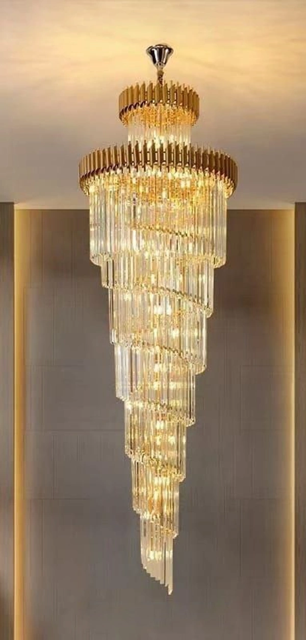 Duplex Apartment Chandelier,Nordic Luxury Crystal Pendant Lights,E14 Modern Metal LED Hanging Light,for Living Room Spiral Stairs-Gold and Gold 28x83inch