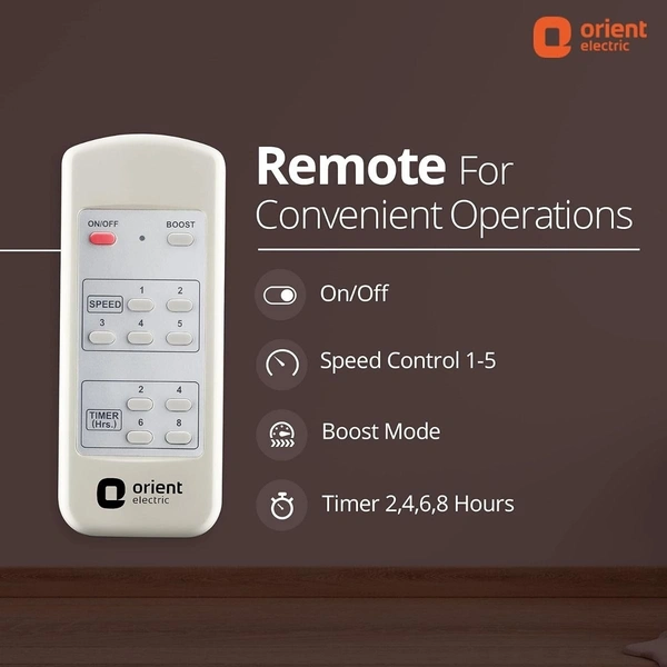 SMART REMOTE FOR EASE OF OPERATION: Control your fan at the click of a button! The smart remote comes with 5 speed settings and smart features like Boost mode and Timer functionality for 2, 4, 6 and 8 hours.