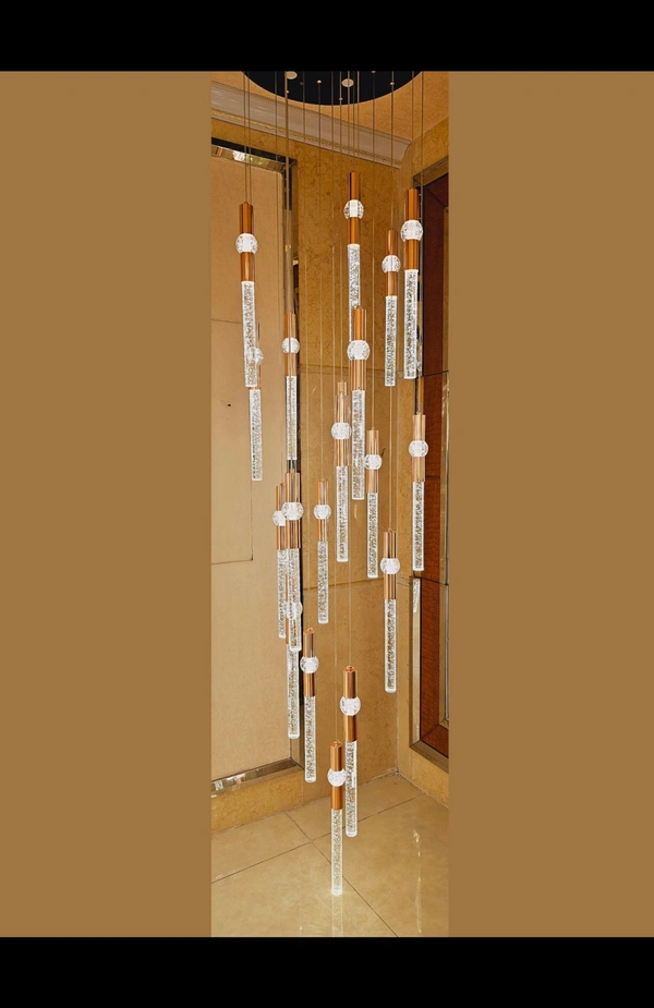Flashing God 11feets Long Chandelier Modern 16-Light Silver Transparent Crystal with Bubble Pendant Light