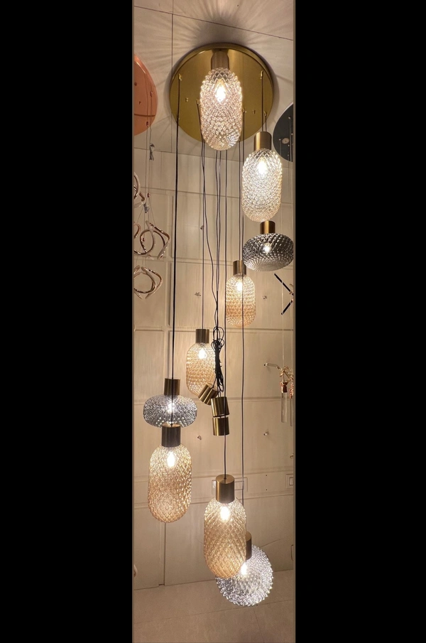 LED Chandeliers, Delicate Decorative Pattern Glass Ceiling Pendant Lighting Adjustable MI-NI Pendant Light Compatible with Kitchen Island Dining Room Living Room Bedroom Bar Original Design