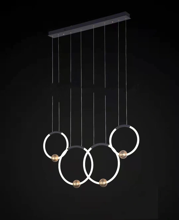 LED Pendant Light Dining Room Golden Ring Contemporary Chandelier Stair Attic Living Room Indoor Hanging Lights Ceiling Lights Circle Decoration Height Adjustable,Warm light 3000k,4 ring