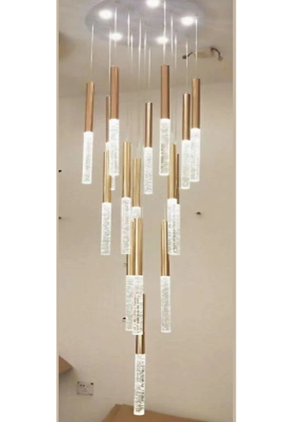 Luxury Staircase Apartment Revolving Loft Long Crystal Chandelier Glass Duplex Building Villa Stair Lamp LED Meteor Shower Chandelier Living Room