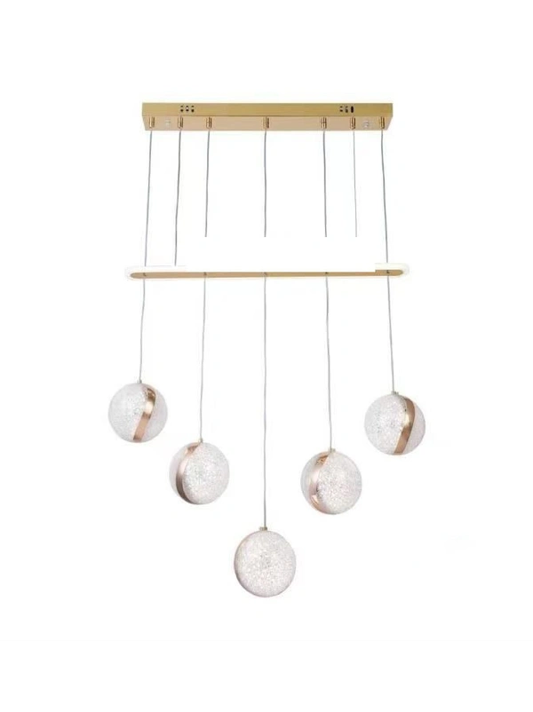 Modern Bar 5 Light LED Hanging Pendant Lamp, Spherical Carved Crystal Balls, 1264lm, 3200K
